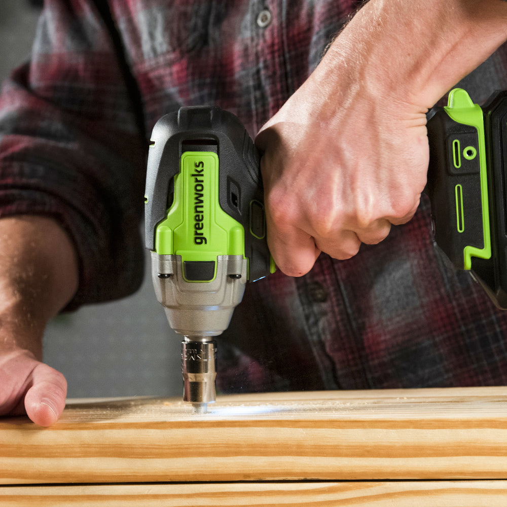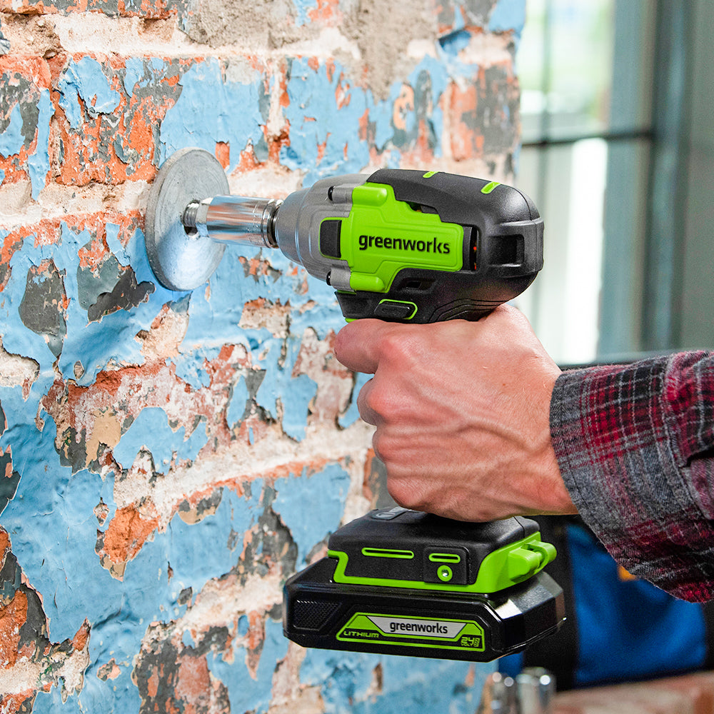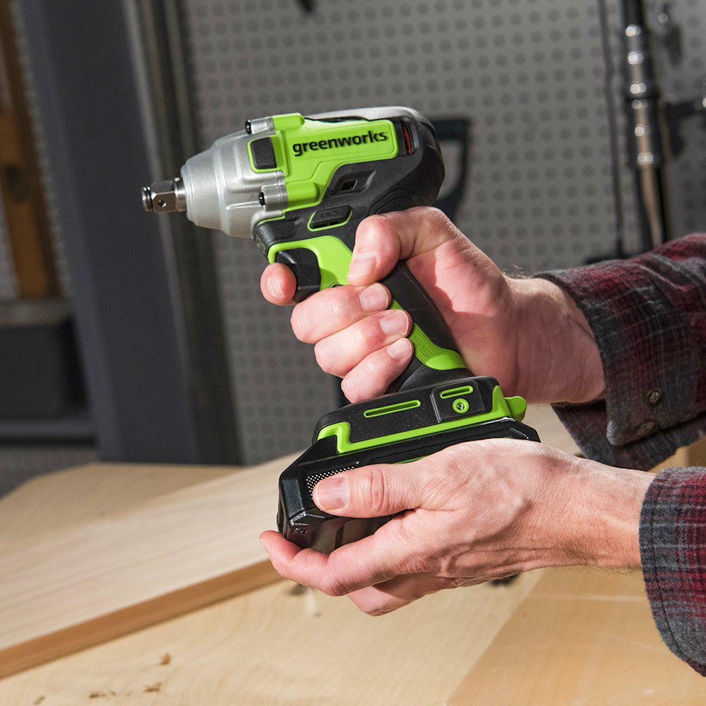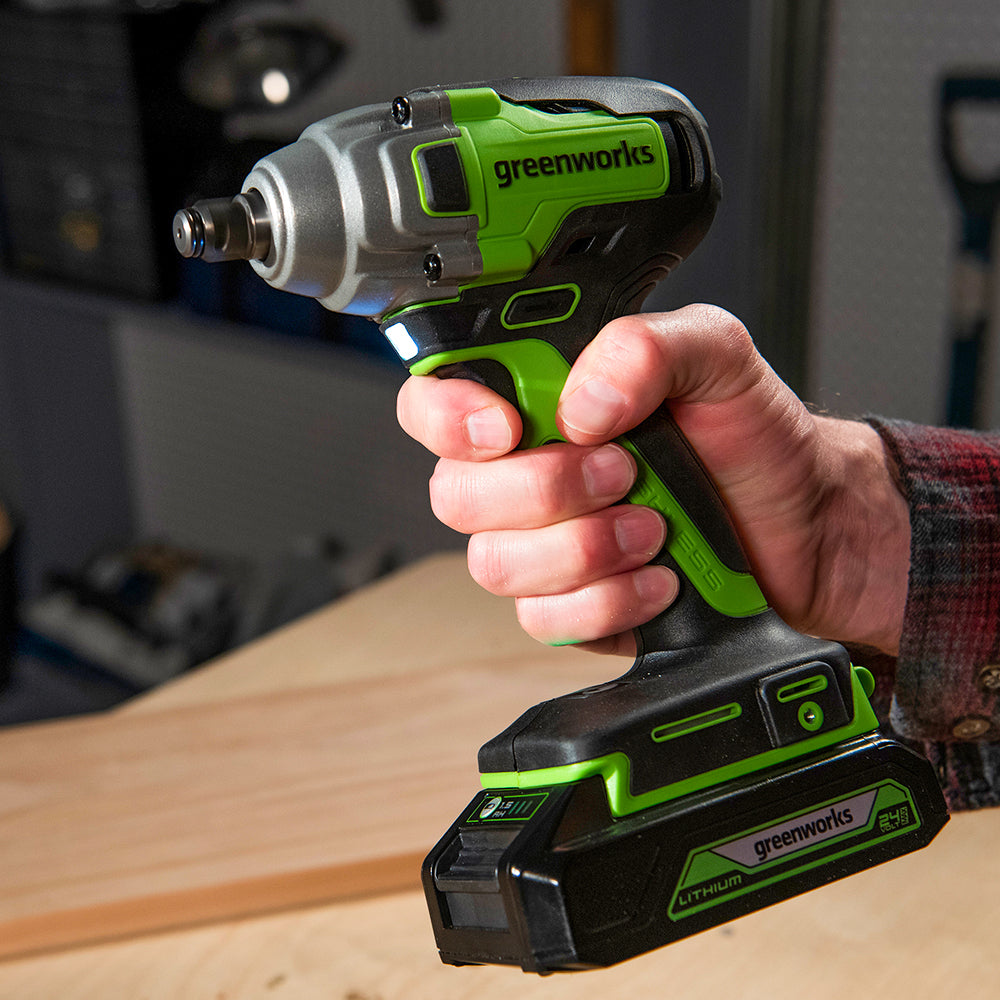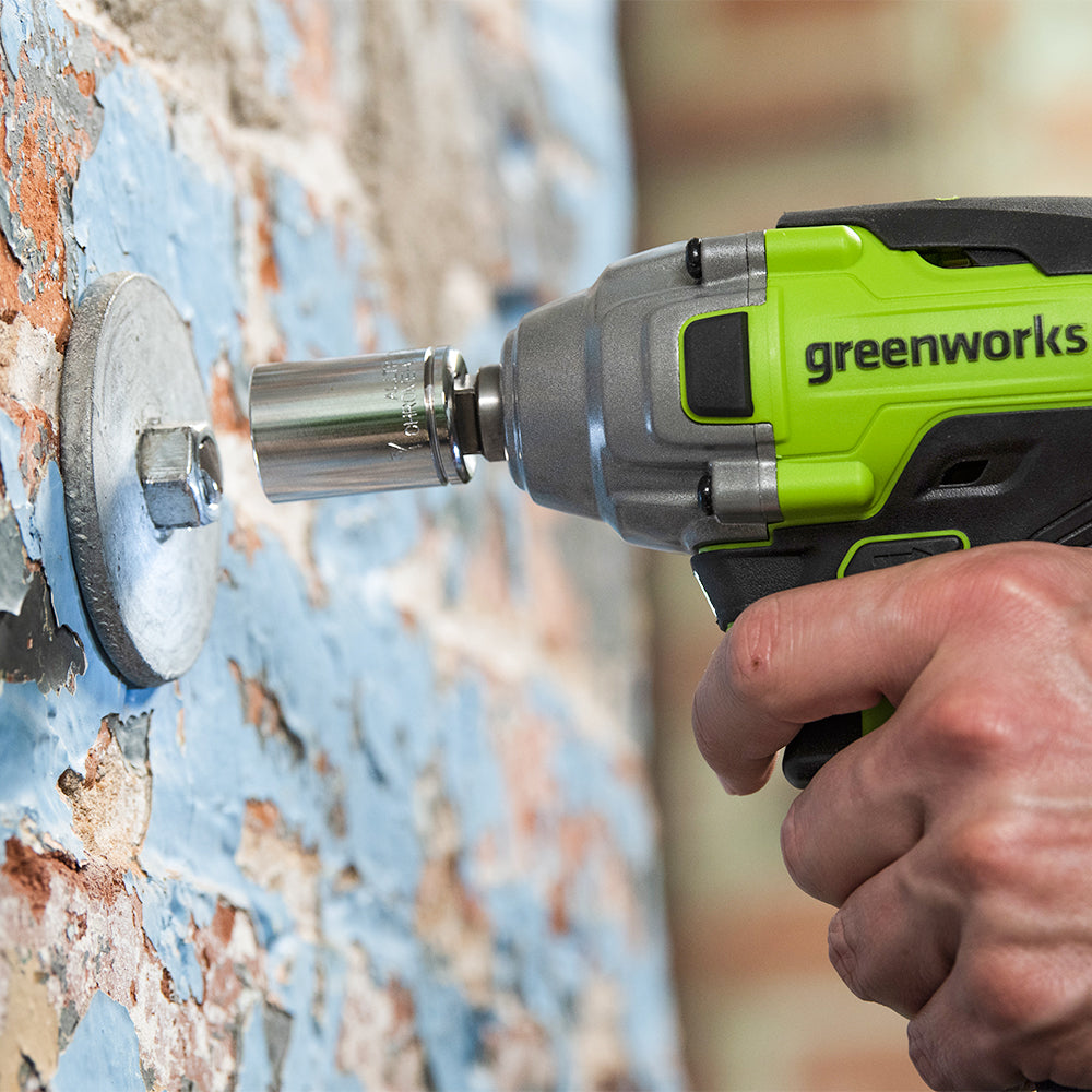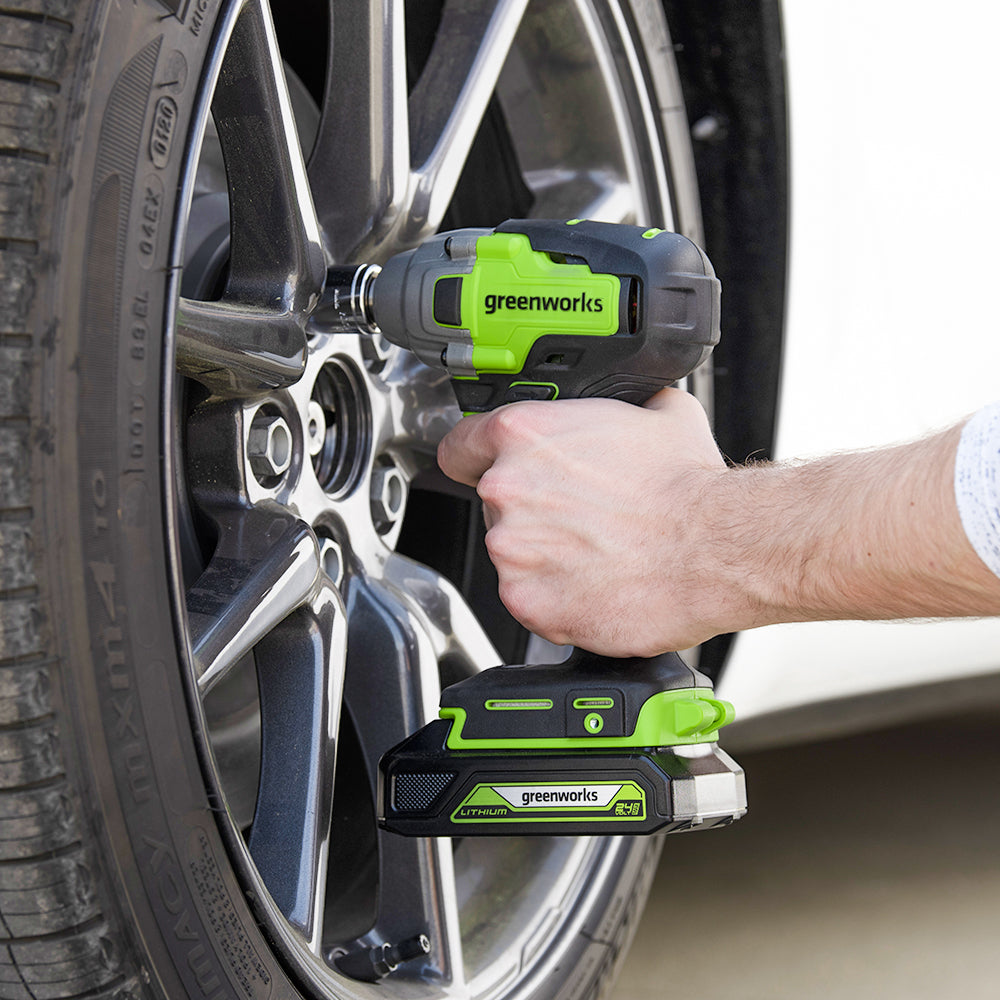 • Betrieb mit jeder Greenworks 24-V-Batterie